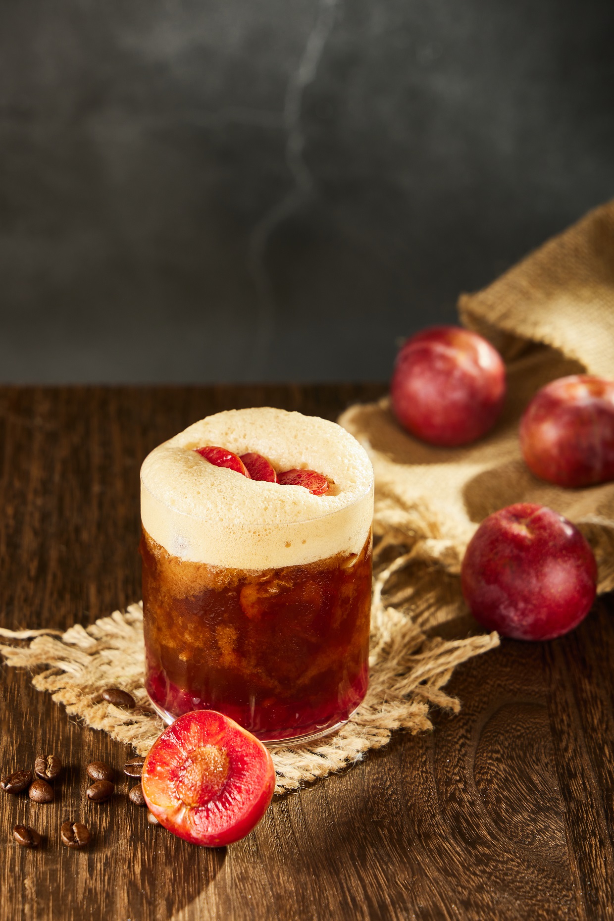 1、出品杯中加入龍眼鮮果,搗泥備用;