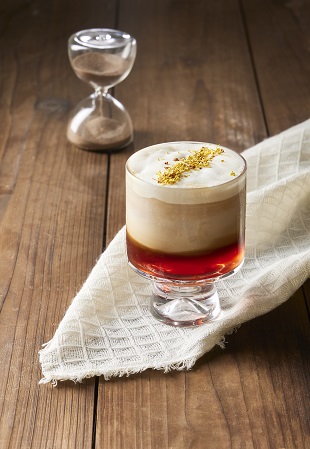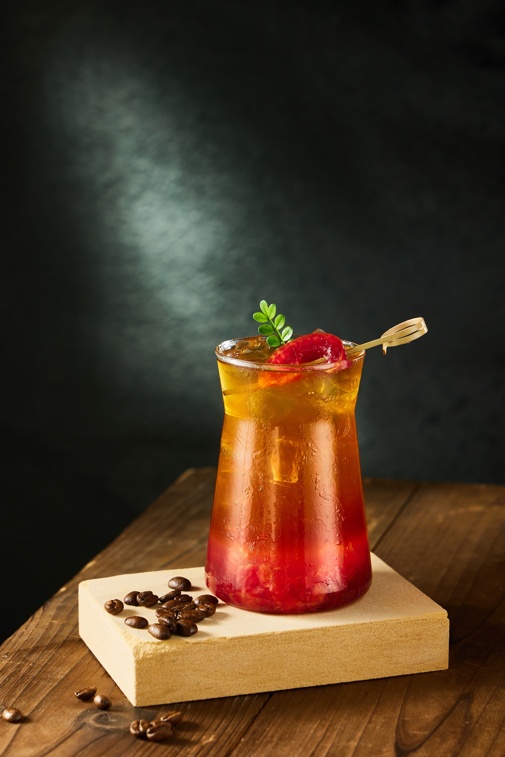 3、將雪克好的咖啡加入出品杯中,裝飾即可出品。
