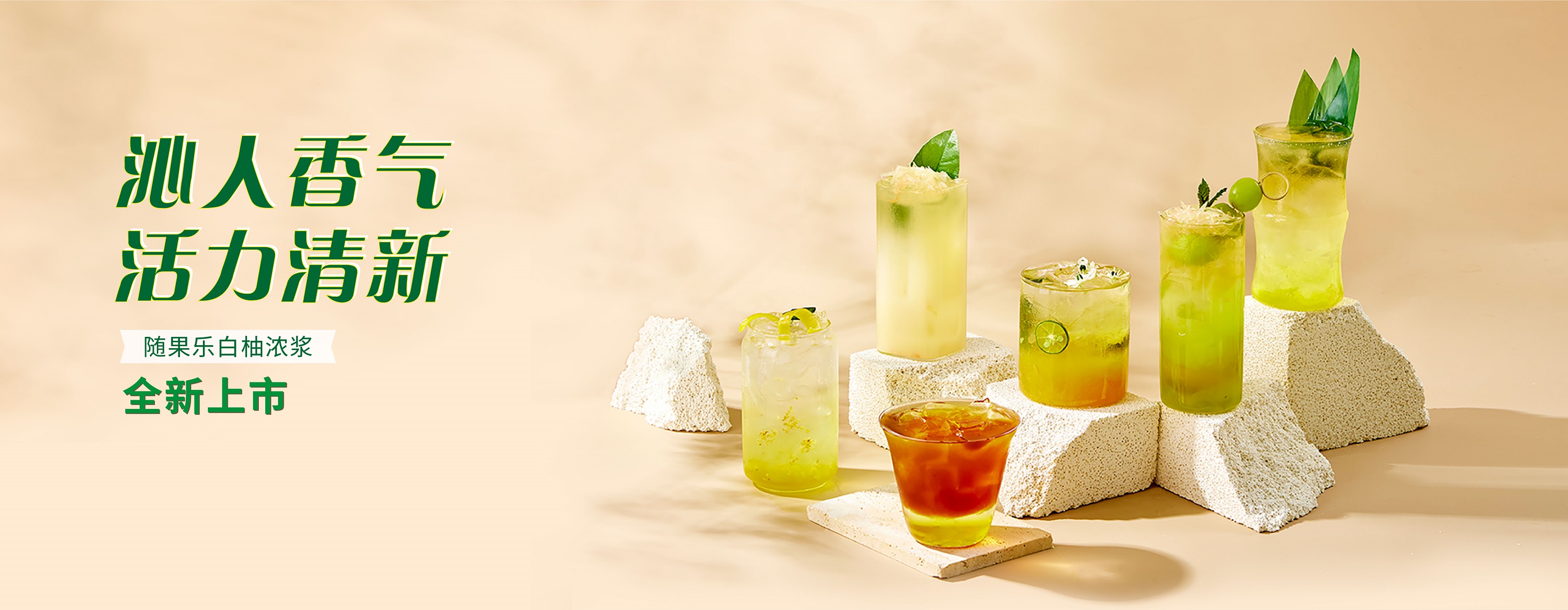 2、雪克杯中加入隨果樂(lè )白柚濃漿、安德魯青葡萄顆粒果醬、冰塊、山茶花烏龍茶茶湯雪克均勻 ;